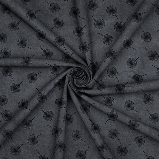 Printed Poly Cotton Dandellion Charcoal