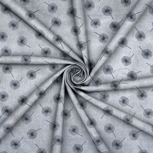 Printed Poly Cotton Dandellion Grey