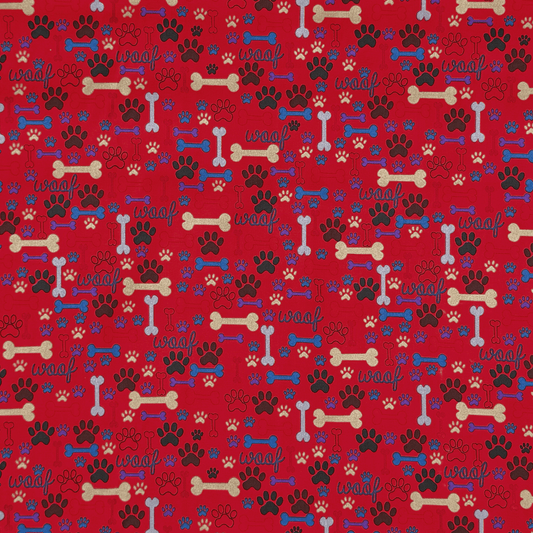 Printed Poly Cotton Pawz Red
